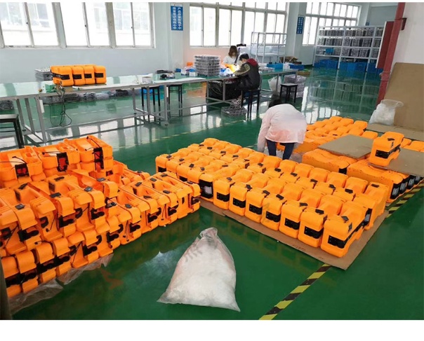 該産品用瞭(le)20個18650電池進行串並(bìng)聯,形成瞭(le)電壓14.8V,容量10Ah的電池組。燈頭用9個燈珠串並(bìng)聯,功率達到27W,光通量相當於鹵素燈150W。工作時間強光10小時,工作光20小時。重量7kg,尤爲輕便。
