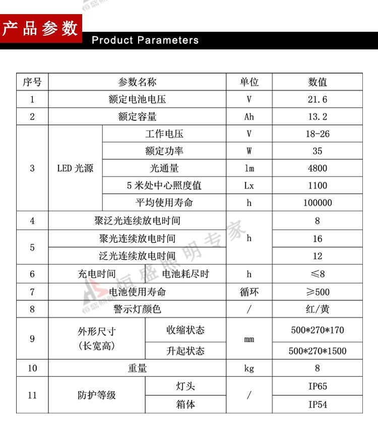 1、一燈(dēng)多用,既可升起充當(dāng)固定照明使用,也可以手提時作爲探照燈(dēng)使用,滿足不同客戶的照明需求。