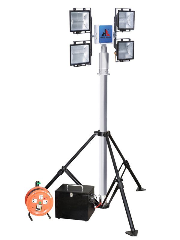 3.1 燈具下部氣杆採(cǎi)用可調式三腳支架支撐(chēng),在不超過 15°的斜坡、 碎石路面及面積狹窄的地方均能可靠固定;發電機組底部裝有萬向 輪,可在坑窪不平的路面上方便移動。