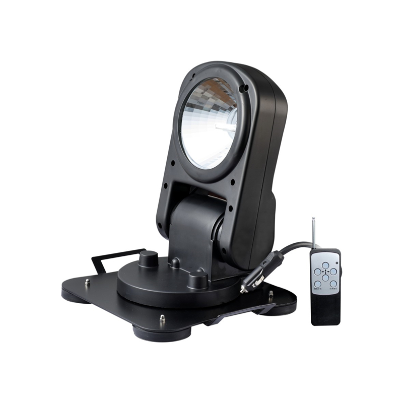 2. 採用35W氙氣光源,漫反射反光杯聚光效果好,照明亮度高,光班光色均勻,照射距離可達1000米,並實現瞭冷熱均能在瞬間啓動點亮。通過遙控器操作,燈頭可實現上下180度、左右360度全方位無死角搜索照明功能。