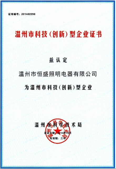 根據《關於(yú)浙江省科技型中小企業認定工作實施意見》(浙科發高〔2002〕201号)、《浙江省科學技術廳關於(yú)省科技型企業認定有關事項的通知》(浙科發高〔2012〕286 号)文件要求,經對各縣(市、區)科技局推薦上報(bào)的材料進行審核,溫州市恒盛照明電器有限公司等企業榜上有名。