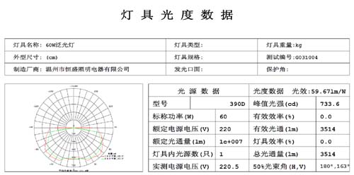 二、燈具光度數據