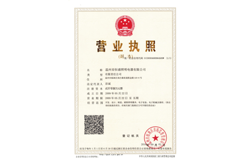 應相關管理部門的要求,也是恒盛照明企業運營所需。本月公司辦(bàn)理瞭(le)營業執照、組織機構代碼證、稅務登記證、社會保險登記證和統計登記證“五證合一”營業執照。