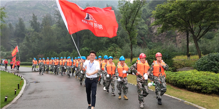 同時我們溫州恒盛照明電器有限公司也參(cān)與演練和展會,恒盛照明在下防汛辦(bàn)指揮協同下,在下雨中高舉旗子同防汛同志一起演練。