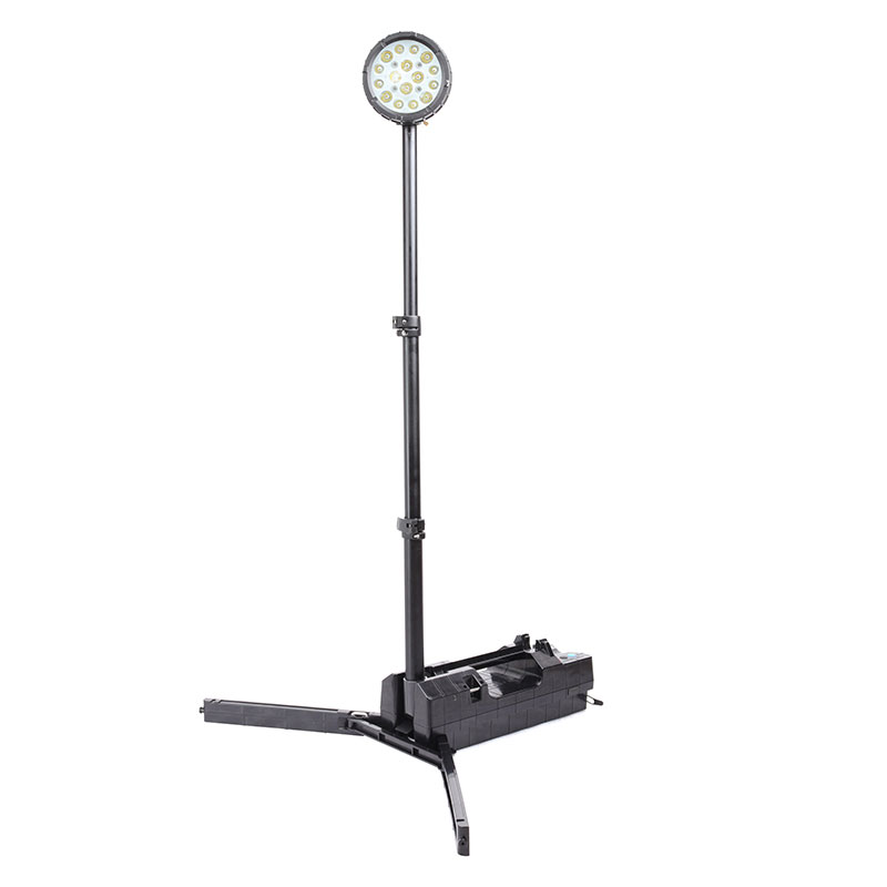 (2)多功能,升降杆的固定方式爲快鎖結構,可升高到1.2米作固定照明使用,亦可折疊作探照燈使用。